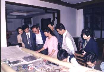 | 施敏教授与故乡施氏亲属在苏州刺绣研究所参观(2001年10月27日)。 | 施敏教授与故乡施氏亲属在苏州寒山寺参观(2001年10月27日)。 |