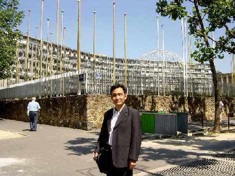 周苏宁2003年从苏州到法国巴黎参加第27届世界遗产大会,在巴黎教科文总部前留影(2006。02。25)