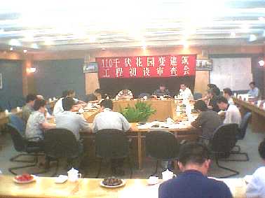 | 徐州供电公司《本部生产用房》初设审查会之一:会场全景(2003。8。26)《设计审查小电影》 | 徐州供电公司《本部生产用房》初设审查会之二:咨询公司专家组在会上(2003。8。26) |