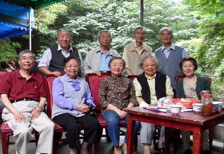 | 张继庆和夫人沈万萍。(张继庆是施家淦在同济大学机械系的校友、航天部研究院的同事。退休前为航天部外事司司长。现为“老年网友”)(2011。11。28) | 张继庆夫妇与“级友”在成都望江公园(2011-11-28) |